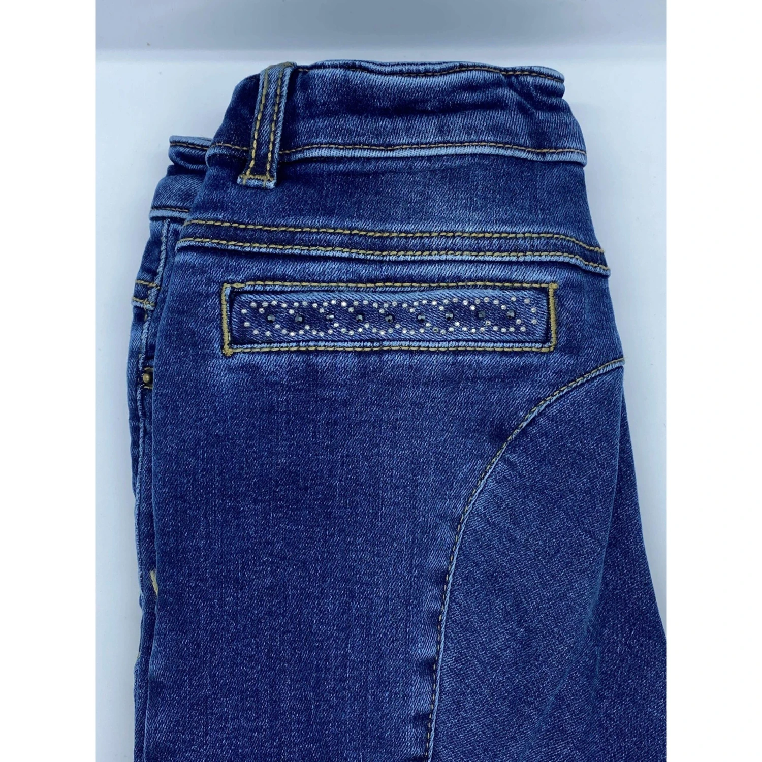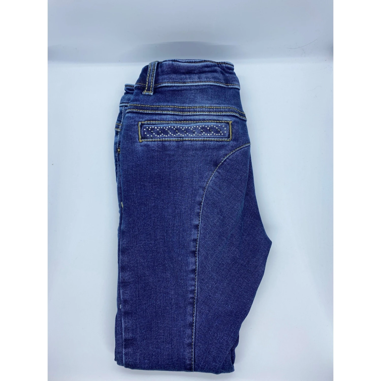 The Animo NAG Girls Breeches are a super comfortable, stretchy breech. Simple detailing on the back pocket as seen, with AGS on the knee.