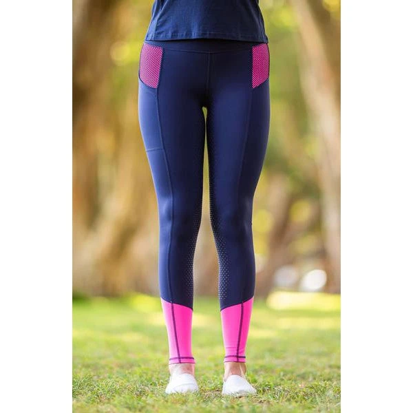 Our performance tights feature a full seat of silicone grip, light compression performance fabric, moisture-wicking technology to keep you fresh, and four-way stretch for a superior fit. The figure-flattering high and wide waistband and phone pocket make these tights perfect for all equestrian disciplines. The high-quality performance fabric is perfect for any weather, and the style is flattering on all shapes and sizes.