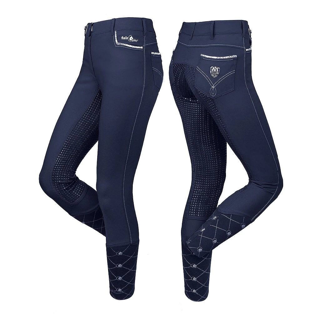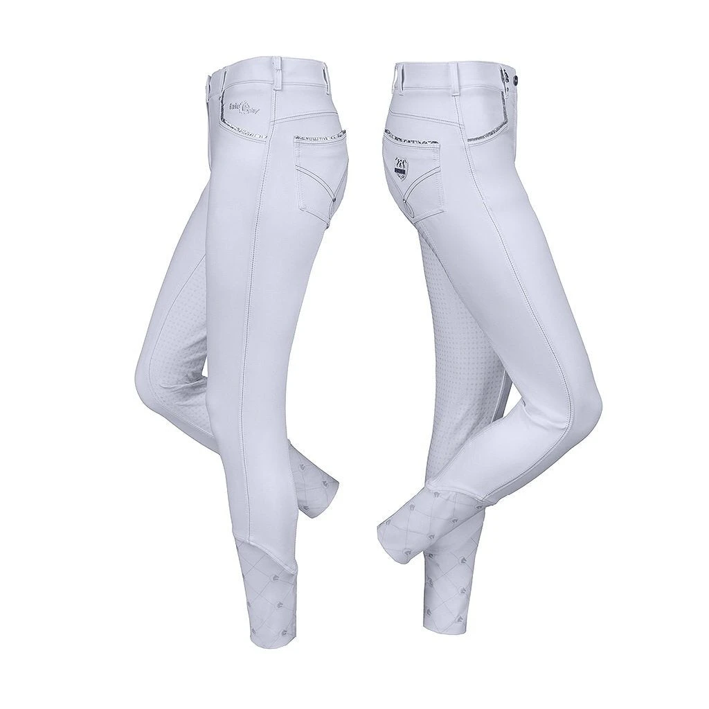 Introducing our Elegant Women’s Full Seat Breeches with COMFiSTICK® Silicone Grip. These breeches are designed to fit perfectly and provide maximum comfort during your rides. The unique silver ruffle detail on the top of the pockets adds a touch of elegance to your equestrian wardrobe. Available in black, grey, navy, white, and light blue, you can choose the color that best suits your style.