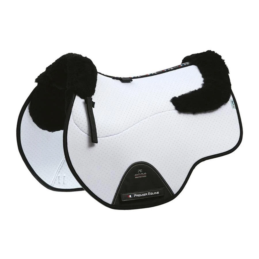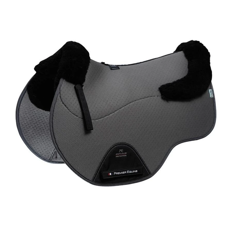 Wool has the ability to absorb up to 30% of its own weight in moisture and when used in conjunction with our advanced Airtechnology it allows moisture to escape, keeping your horse dry and comfortable. Together the fabrics provide a technically advanced system of protection and injury prevention. Our new spine design has been developed to reduce pressure points and provide the best protection for your horse. With a larger surface area covering the entire under-seat panel region, the natural fibres will effectively wick away moisture from the skin, distribute pressure evenly and aid shock absorption. To enhance comfort and protect your horse, all Premier Equine Merino Wool Saddle Pads no longer feature a clear-spine design, which can cause pressure from seamlines, posing the potential for rubs, sores and uneven pressure distribution.